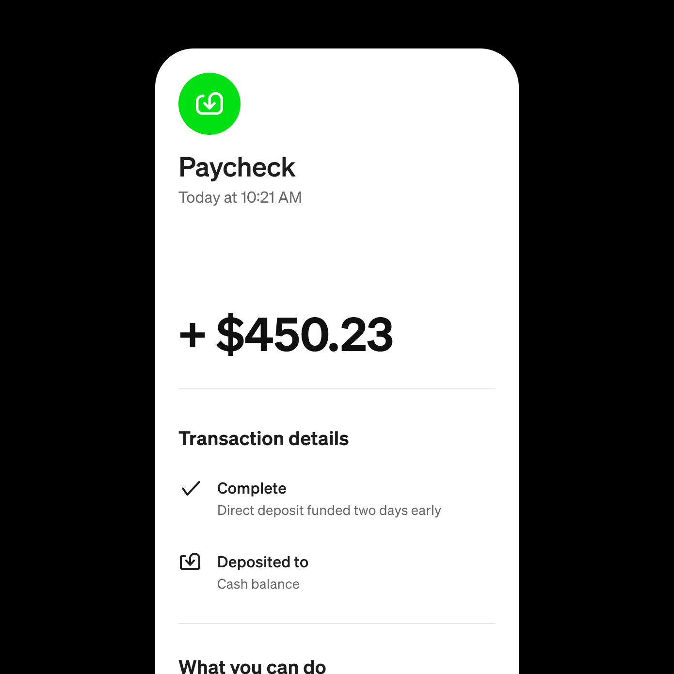 Direct deposit provided by Cash App, a Block Inc. brand.